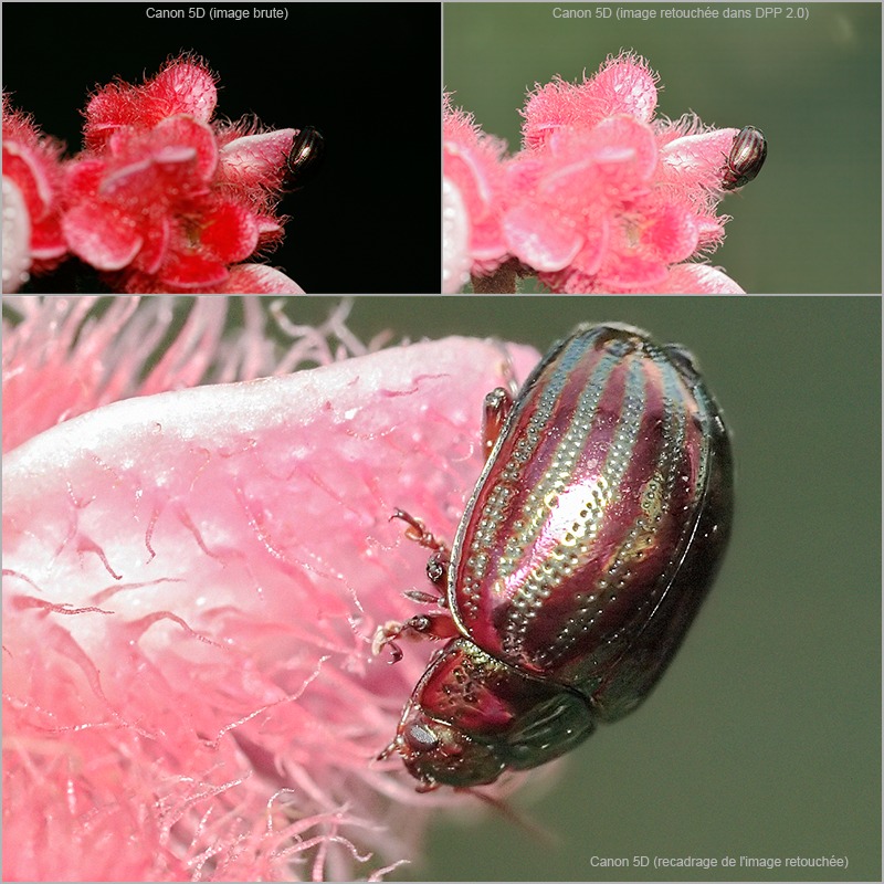 de rattrapage d'une image sous-exposée Canon 5D + EF 180 macro F3,5 L + flash 550EX + diffuseur temps de pose 1/60éme à F/D 10 (200 iso) |