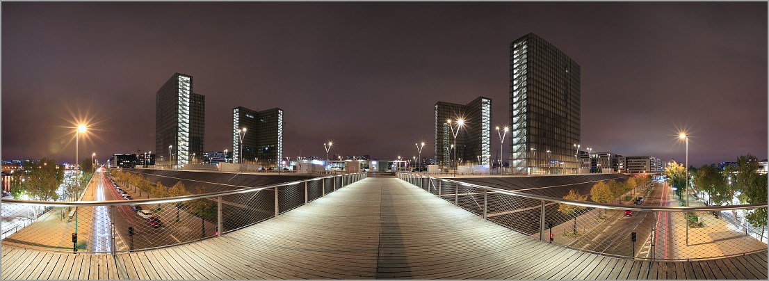 Bibliothèque Nationale de France & passerelle Simone de Beauvoir en vue panoramique (PARIS)